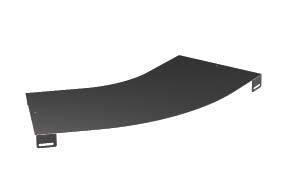 Крышка на угол горизонтальный 45 градусов с радиусом поворота R = 300 мм для лотка с шириной основания - 200 мм. Применяется для защиты кабеля от внешних воздействий и механических повреждений.  Толщина стали - 1 мм. Аксессуар поставляется в виде комплекта, в состав которого входят соединительные пластины и крепежные элементы, необходимые для надежного монтажа трассы. Изделие представлено в исполнении "Горячий цинк".