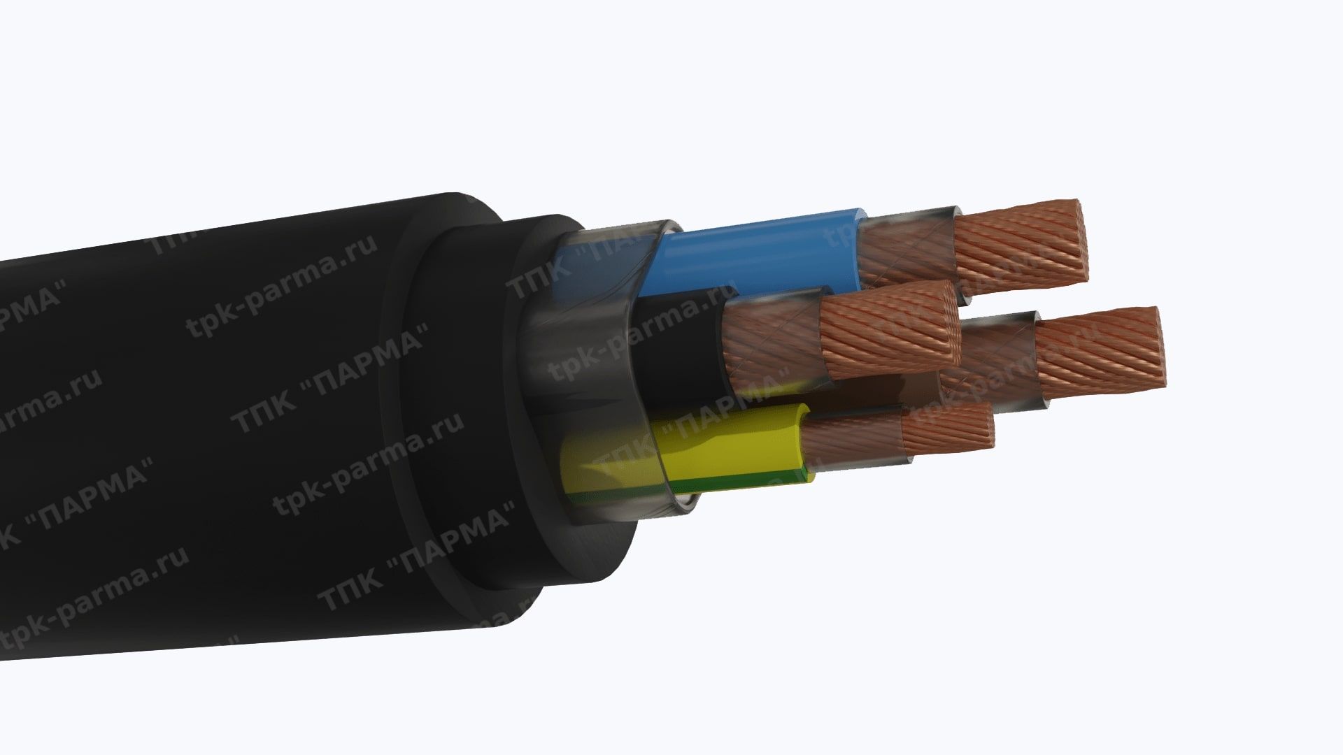 1. Пять токопроводящих многопроволочных медных жил с площадью номинального поперечного сечения 120 мм2, соответствующих 5 классу по ГОСТ 22483-2012.