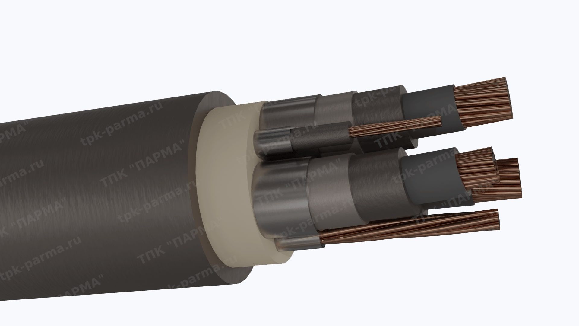 1. Три многопроволочные медные круглые основные жилы с площадью номинального поперечного сечения 16 мм2, соответствующие 5 классу по ГОСТ 22483-2012.